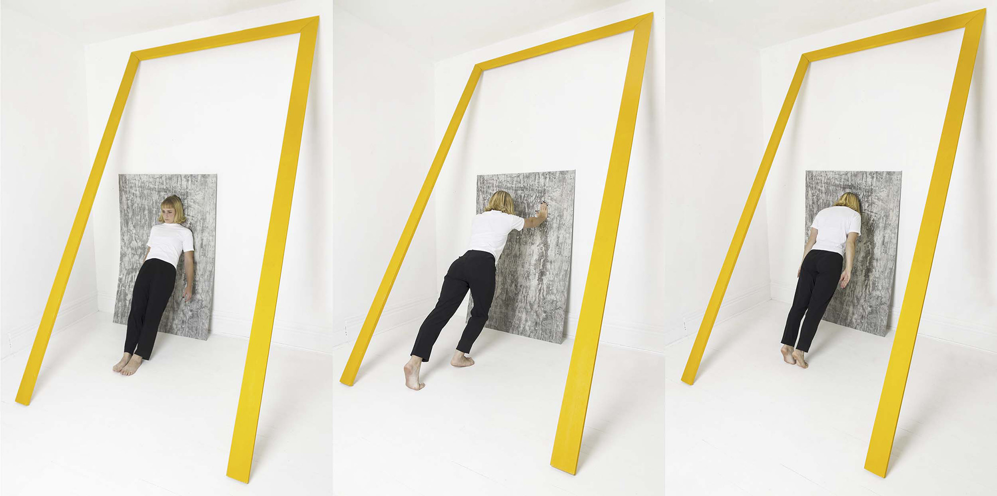 Par une pratique artistique multidisciplinaire, Clara Couzino propose un travail où la notion des médiums — présents ou absents — se perd. Elle explore l’environnement domestique et la charge symbolique des objets qui les composent. Le corps est au centre de ses préoccupations, il entre le plus souvent en relation avec un univers intime. Dans ses compositions, elle s’intéresse à la limite et la complétude des médiums. Un jeu constant d’aller-retour entre 2D et 3D brouille la perception du regardeur. L’artiste procède par des jeux de camouflage et d’échanges de rôles entre les éléments qui composent ses images. L’objet prend le statut de personnage et inversement, le corps s’objectifie par l’anonymat et un travail d’esthétisation souvent déshumanisant. Un rapport dialogique fertile entre corps et objet est entretenu. La neutralité chromatique de ses œuvres accentue la singularité des silhouettes, éliminant les traces d’une mémoire d’utilisation tout comme l’accumulation et la répétition occultent la fonction d’usage. Clara Couzino envisage la forme finale de ses œuvres comme des images qui témoignent d’une documentation d’actions passées, d’installations physiques et d’actes de détournements dans l’espace dans lesquels le plus banal devient étrange par un processus d’esthétisation.